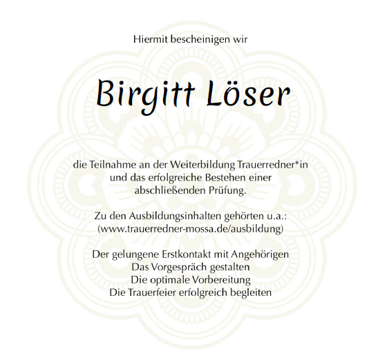 Ich bin glücklich verheiratet und Mama eines wunderbaren Sohnes. Unser Familienleben schenkt mir Geborgenheit, Ruhe und Inspiration – Dinge, die ich auch in meine Arbeit als freie Rednerin einfließen lasse. Gerade in den emotionalen Momenten einer freien Trauung, einer freien Taufe oder eines Abschieds ist es mir wichtig, diesen menschlichen Blickwinkel mitzubringen.